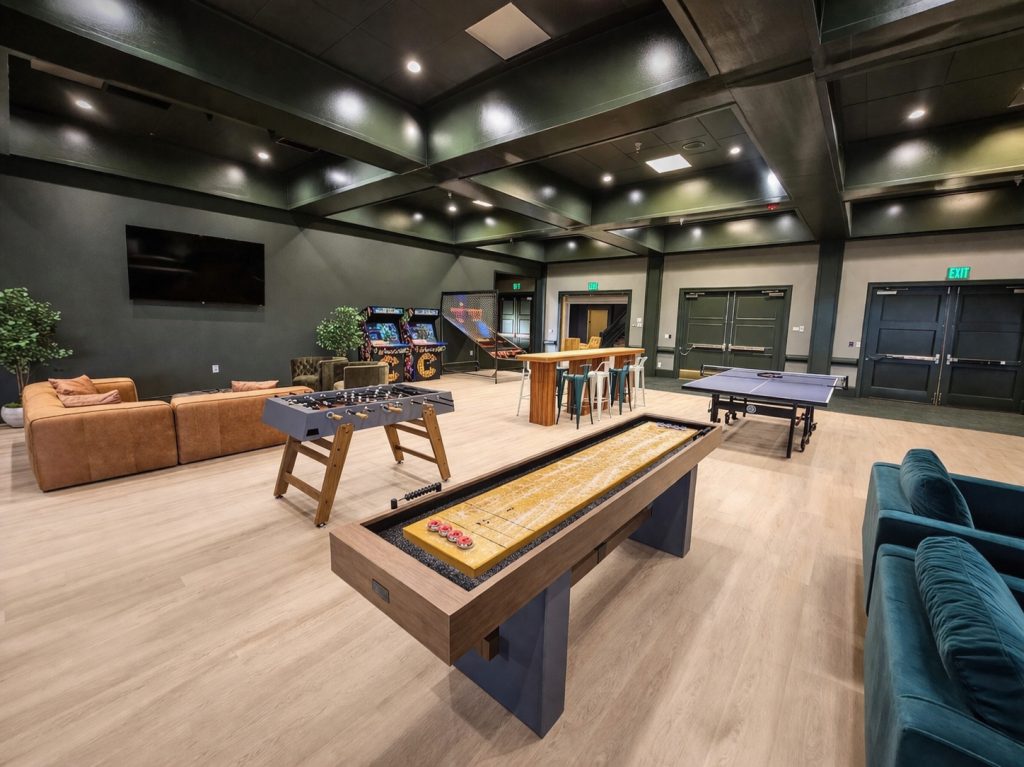 From the coffee shop to the retro lounge with arcade games and ping pong, the community spaces are designed to bring neighbors together.