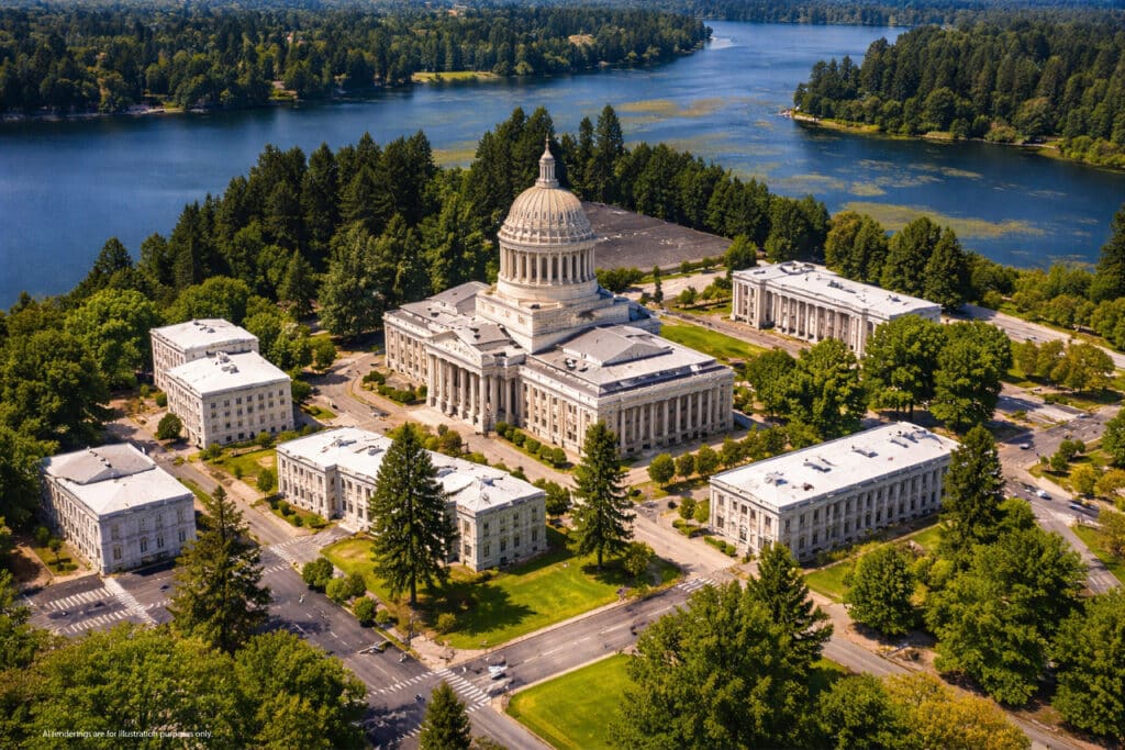 Located at 2402 Lakeridge Way SW, the community sits on a forested hillside overlooking Capitol Lake and downtown Olympia, offering residents a rare blend of tranquility and urban convenience.